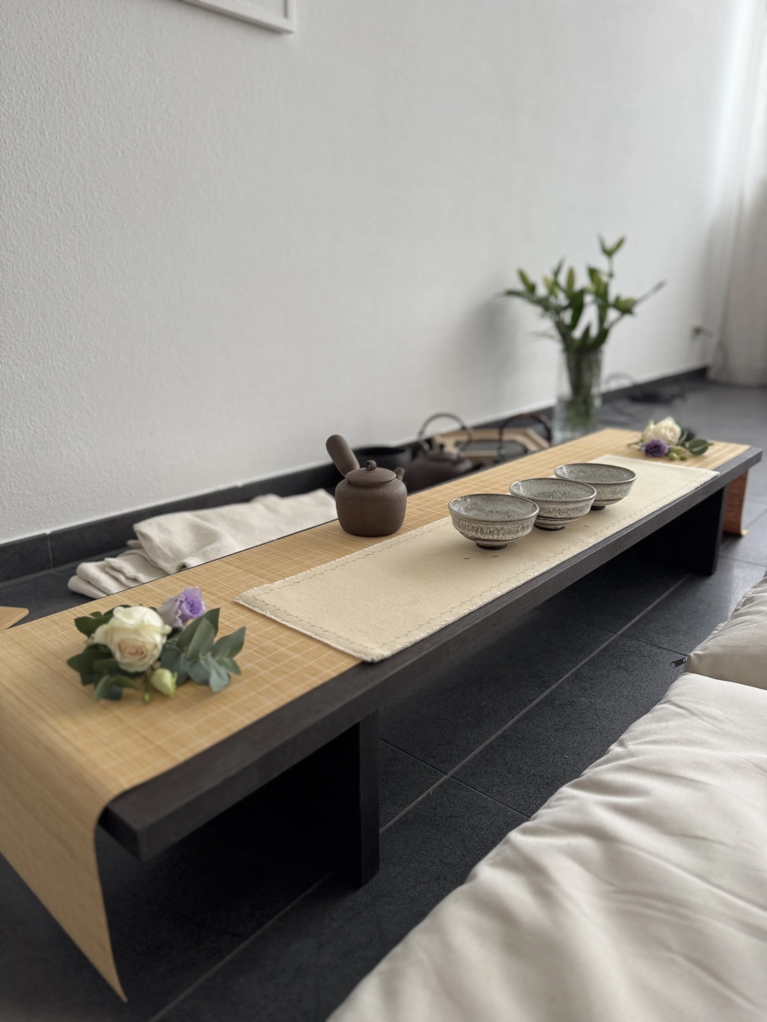 Eine warme Schale mit Tee, der in perfekter Harmonie mit der Natur gewachsen ist, findet sanft ihren Weg in deine Hände.